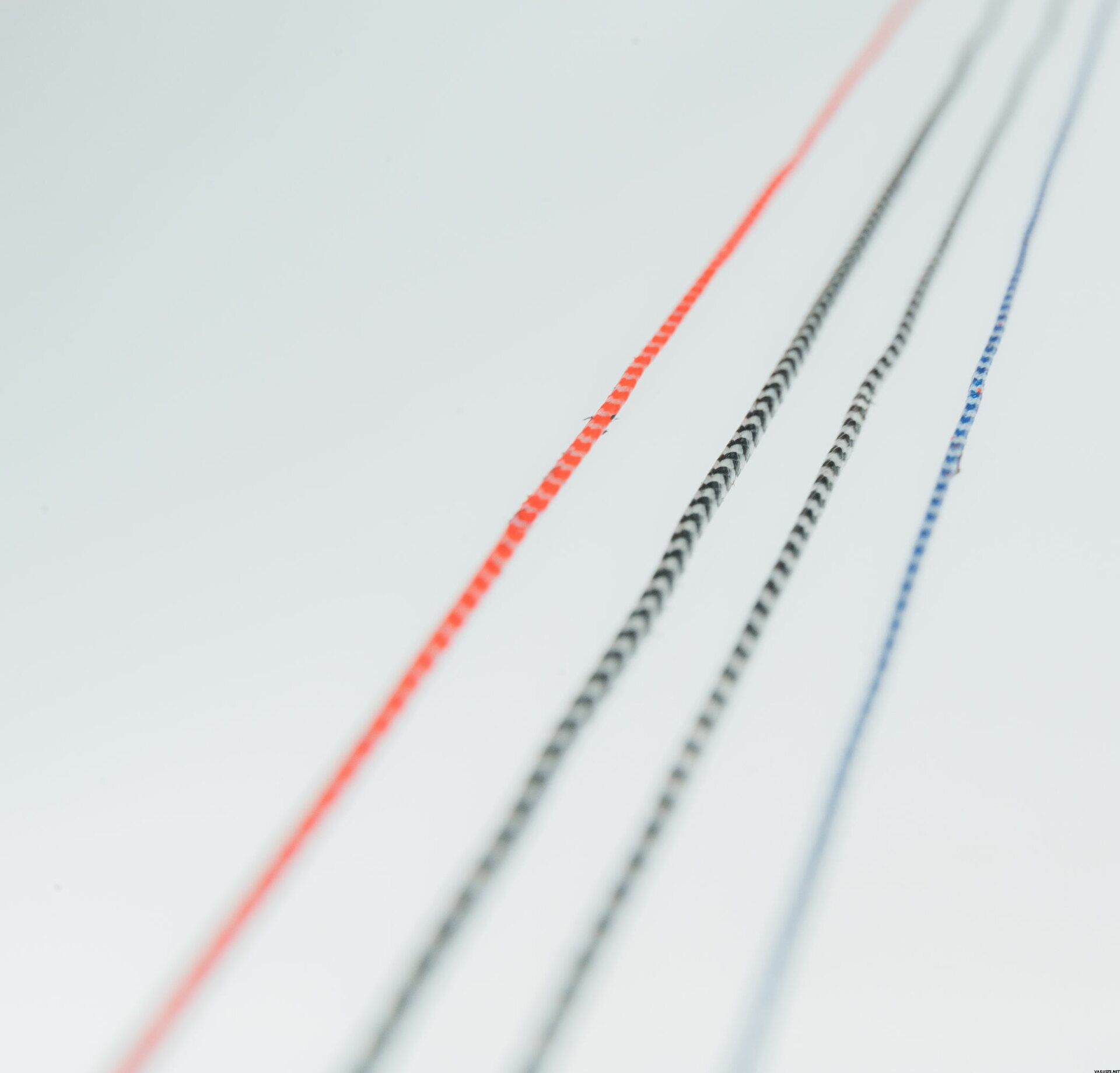 Le linee anteriori da 500 kg e posteriori da 300 kg, codificate a colori, sono tagliate con precisione, prestirate, giuntate e cucite nel nostro stabilimento produttivo per garantirne l'accuratezza. Utilizziamo Dyneema® di origine biologica di altissima qualità: questo materiale offre le stesse prestazioni del Dyneema® convenzionale, con un'impronta di carbonio inferiore del 90% rispetto alla fibra HMPE generica.