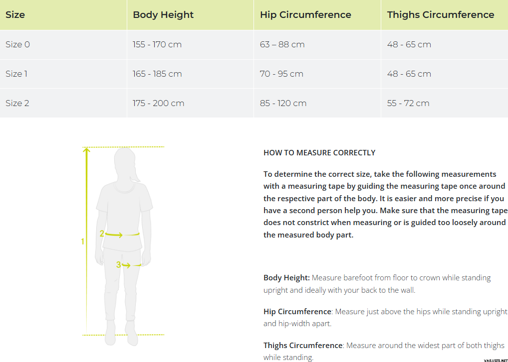 Taglia 1: lunghezza cintura: 70–95 cm, altezza utente: 165–185 cm taglia 1