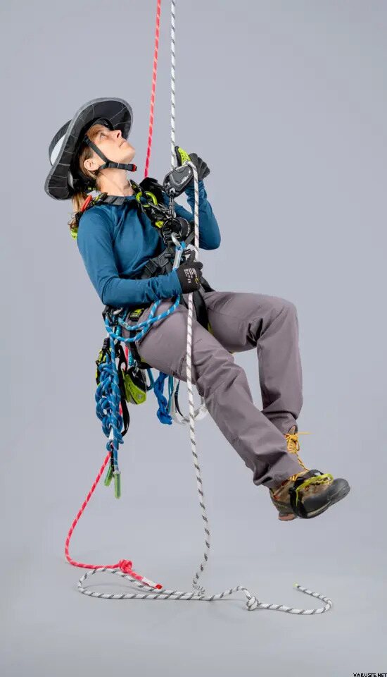 - Dispositivo di risalita con anello per i piedi regolabile in lunghezza per una risalita su corda efficiente e con minore affaticamento delle gambe.