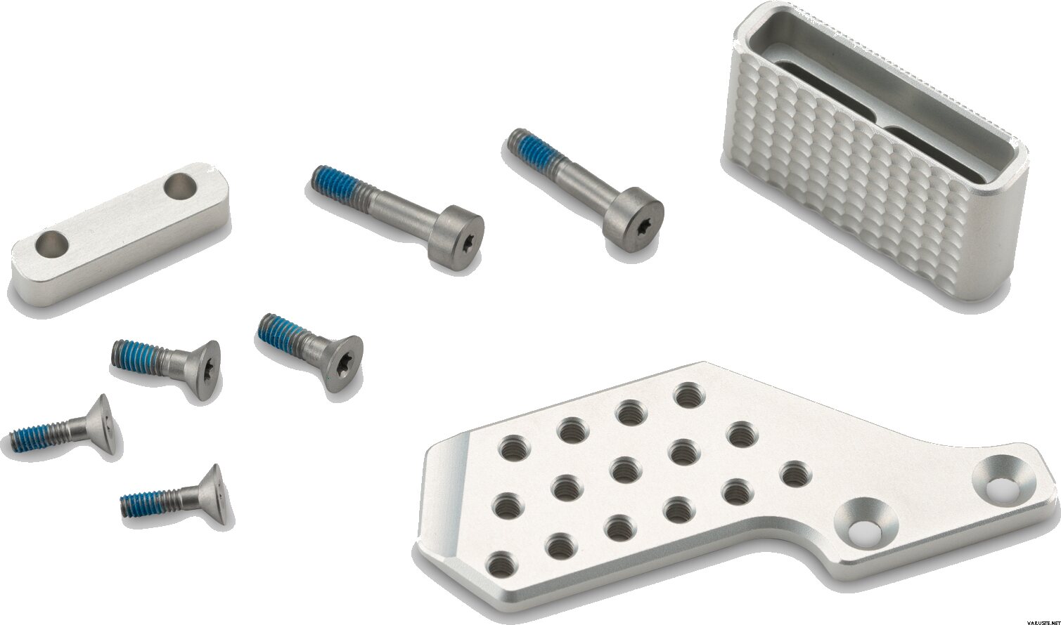 Componenti inclusi: piastra poggiapollice reversibile Pyrus, modulo poggiapollice reversibile Pyrus, distanziale per telaio, viti di montaggio del telaio, viti di montaggio del poggiapollice
