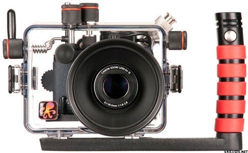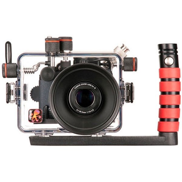 The Ikelite housing for the Canon Powershot G15 is just-right-sized for carefree travel and a comfortable hold with or without a thick glove. All important camera functions are at your finger tips using a series of heavy duty, custom made mechanical controls. A built-in air cushion is our secret for reduced possibility of fogging due to trapped moisture and superior buoyancy control—especially important for shooting steady HD video.