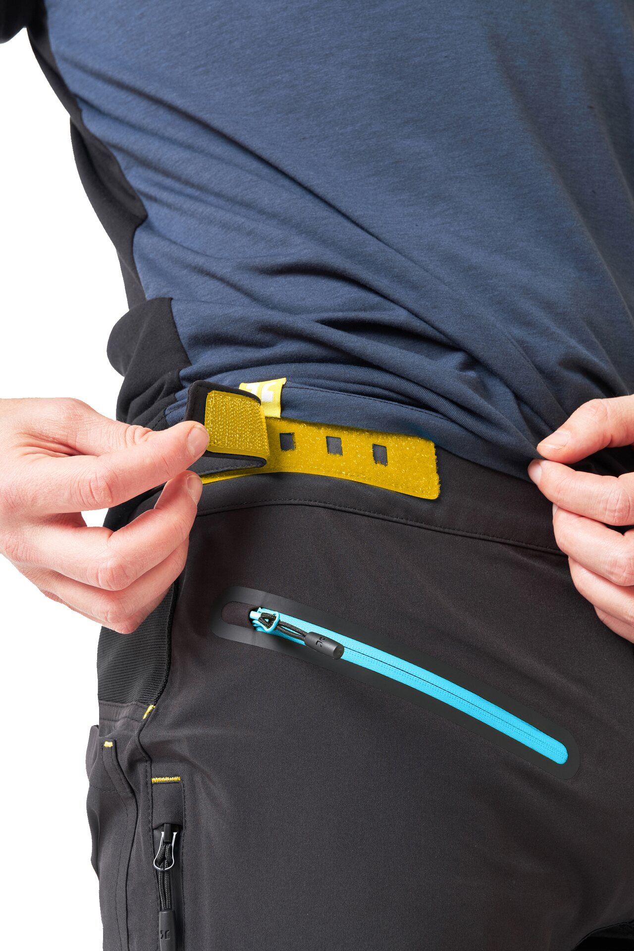 The waterproof material on the back and the lower leg keeps you dry on wet ground, the light fabric on the upper leg offers breathability. An adaptable belt takes care of a comfortable fit, the waterproof stretch- segment on the back provides freedom of movement.