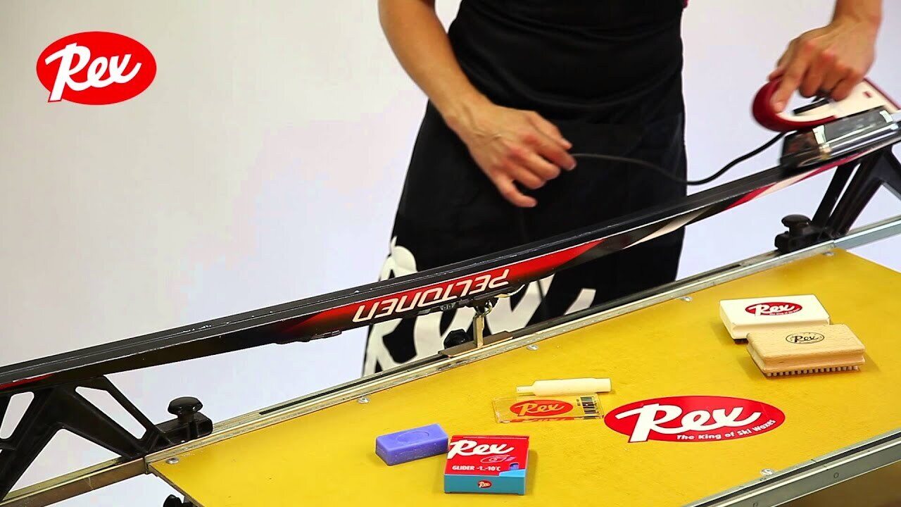 ワックスは比較的硬いので、最初にブロックを熱い鉄にこすり、次にスキーベースにこすりつけるときに塗るのが最も簡単です。まだ温かいときにこすり、冷ましてブラシをかけます。