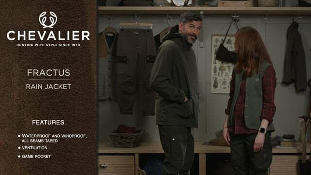 The Chevalier Fractus Rain Jacket is a wind and waterproof jacket in Chevalite™ material with taped seams. The rain jacket is inspired by hunting and shooting, with a generous back pocket that will fit a change of clothing. Well ventilated thanks to the smart yoke on the back, and with a fixed hood that’s adjustable to keep wind and rain out. This rain jacket has two snap-closure front pockets, and a two-way zipper for smart ventilation and greater freedom of movement.