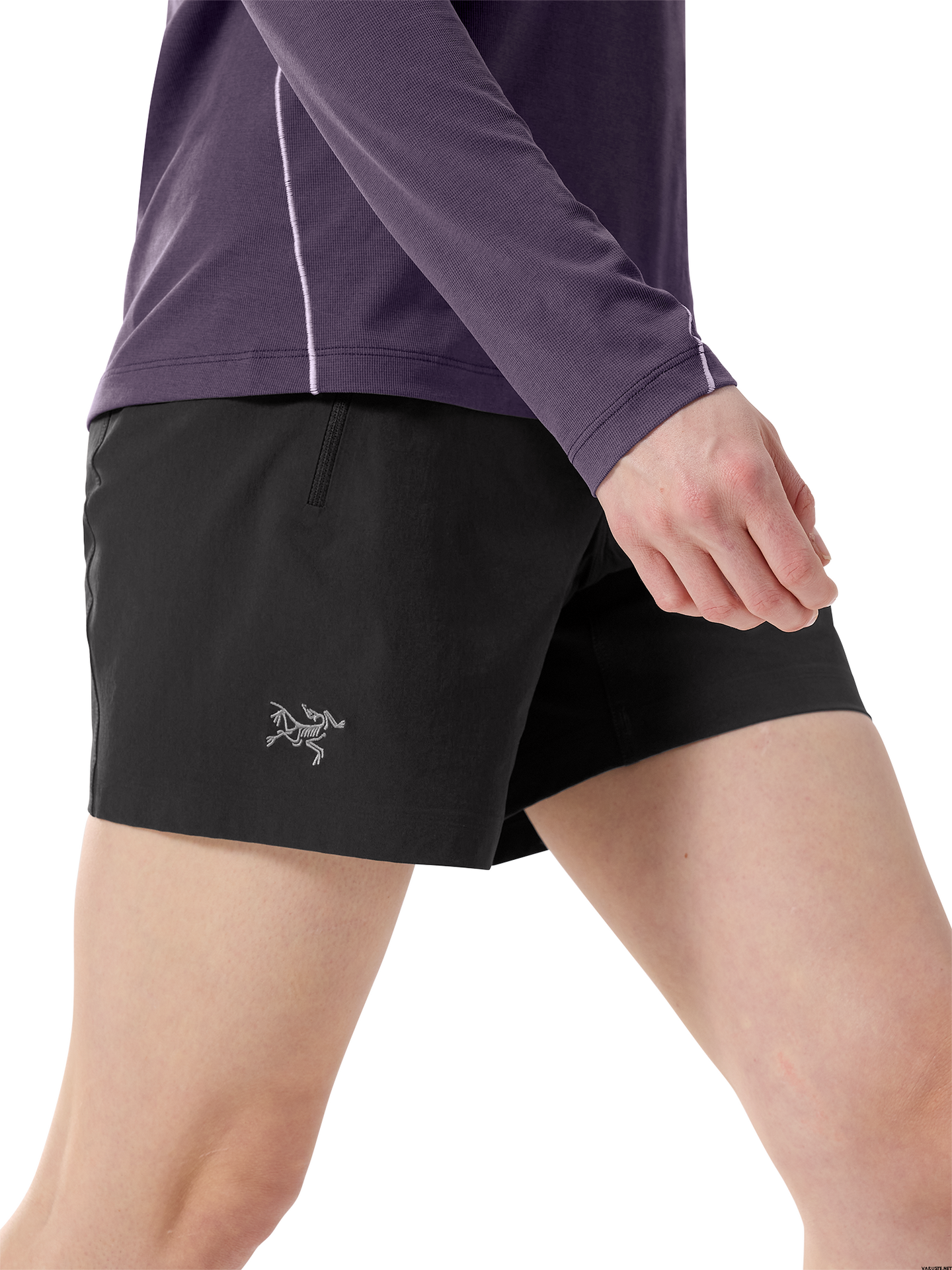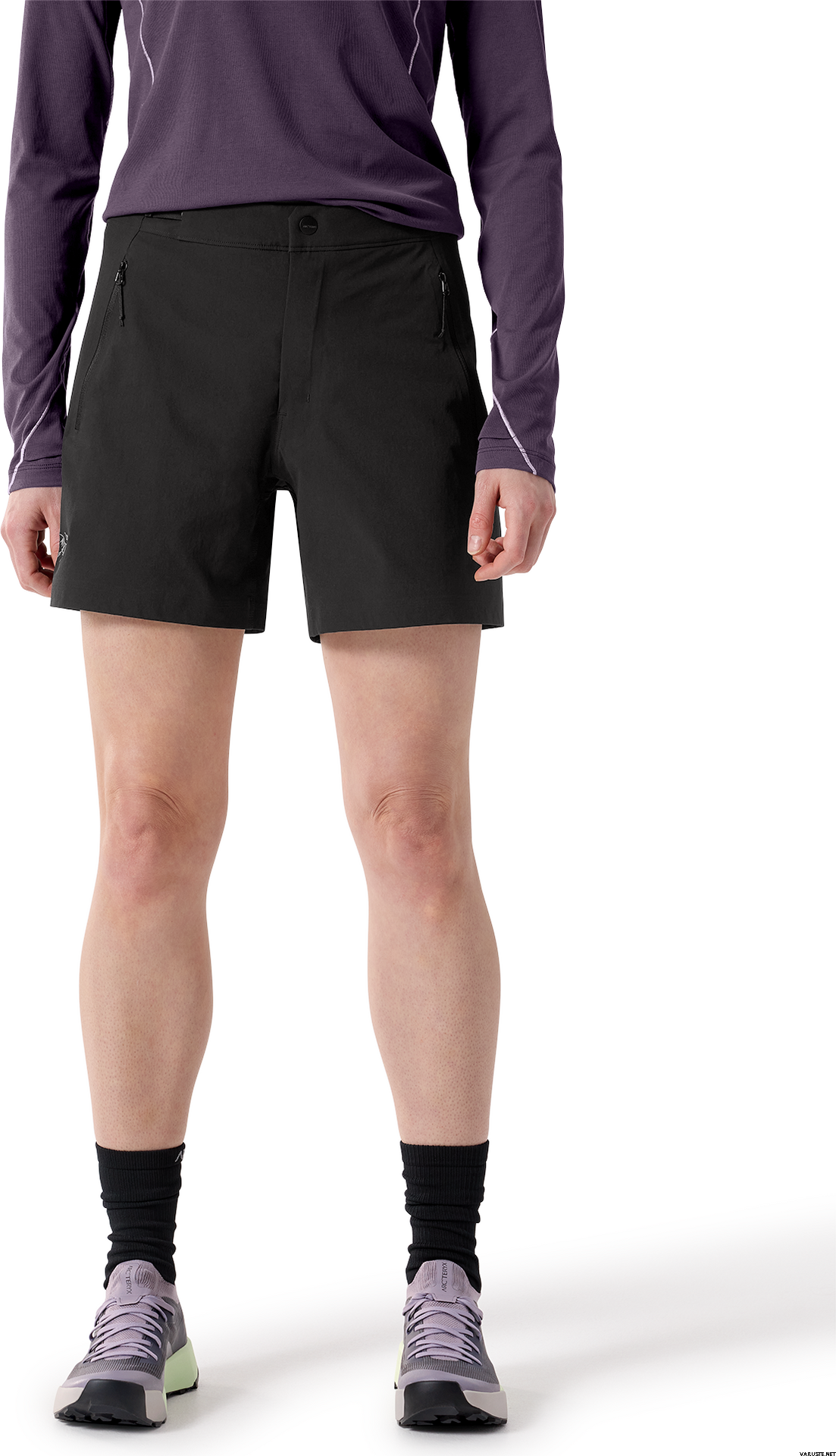 Arc'teryx Gamma Short 6インチ Women'sは、軽量でありながら耐久性に優れたソフトシェル素材を使用した、アクティブなアウトドアアクティビティに最適なショーツです。リサイクル素材のFortius Dw 2.0を採用し、優れた伸縮性と耐候性を実現しています。トレイルランニングや長距離ハイキング向けに設計されており、通気性に優れた快適さと、天候の変化に応じて適度な暖かさを提供します。ロープロファイルのウエスト調整機能はハーネスの下にもスムーズにフィットし、パターンは急な階段でも自然な動きをサポートします。ジッパー付きハンドポケットには、移動中も小物を安全に収納できます。