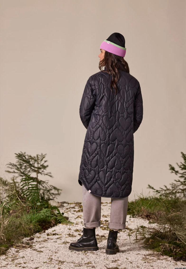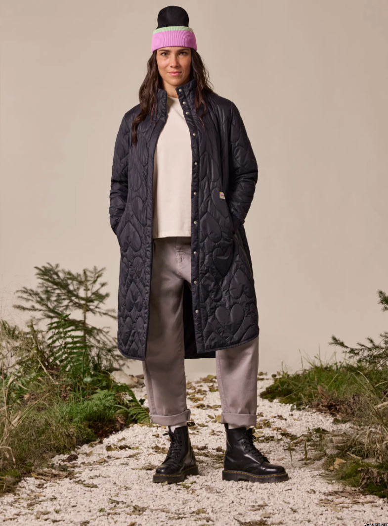 Maloja SmetindenM. Urban Puffer Coatは、肌寒い季節の重ね着にも、穏やかな天候での一枚着にも最適なスタイリッシュな合成繊維ジャケットです。高めのスタンドカラー、フルレングスのスナップボタン留めの前立て、そして広々とした2つのパッチポケットが特徴で、都会的な美学と高度な機能性を融合しています。このコートのユニークな特徴は、中綿を固定するハート型の刺繍です。Bluesign製品認証は、合成繊維と天然繊維の両方において、環境に配慮した生産と安全な加工を保証するものです。