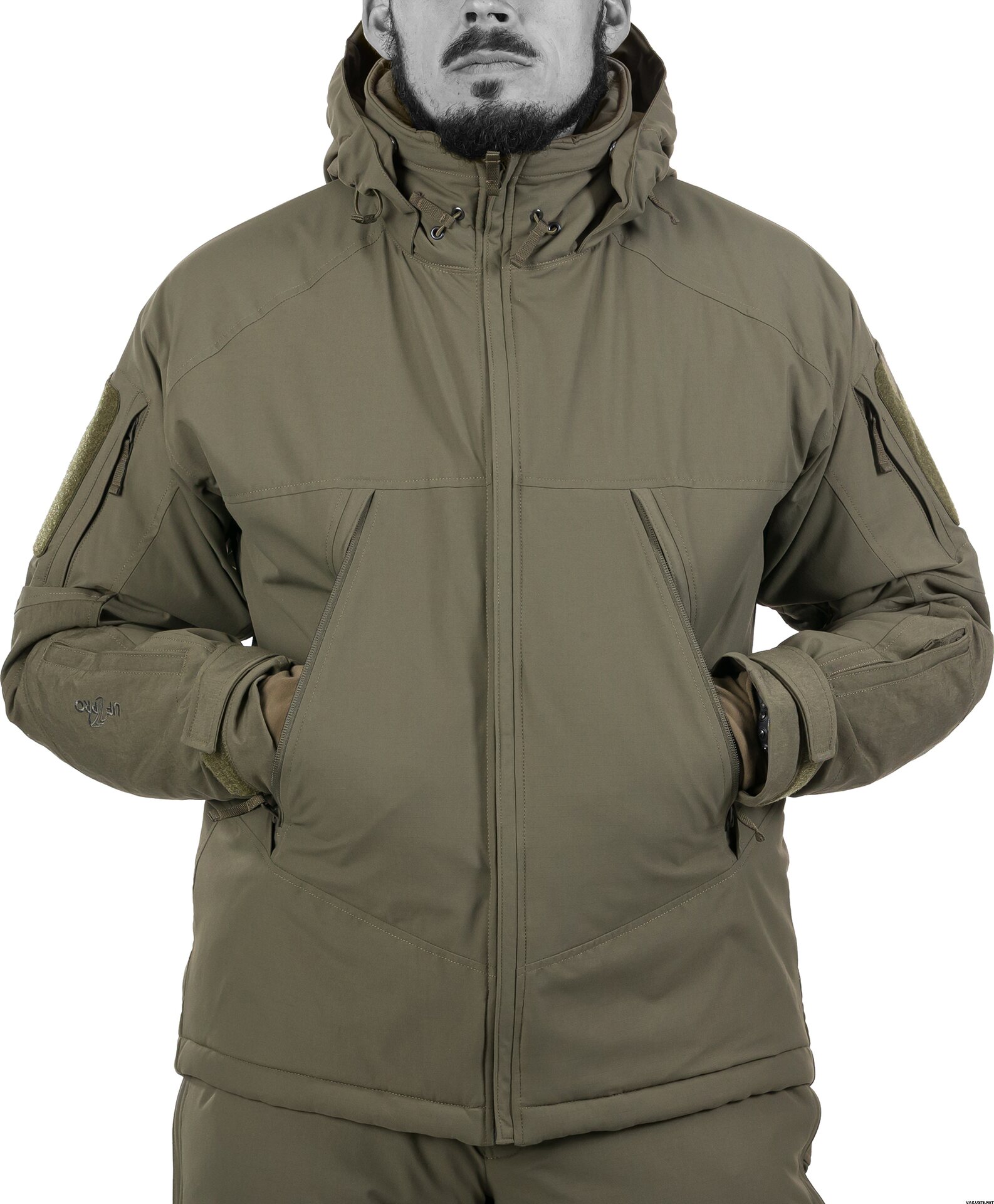 UF Pro Delta OL 4.0 タクティカル ウィンター ジャケットは、厳しい冬の条件向けに設計された、丈夫で多用途なアウターウェア オプションです。このタクティカル ジャケットは、体の熱を効率的に閉じ込め、かさばることなく暖かさを確保する中空ポリエステル繊維の G-Loft 断熱材を備えています。そのデザインは、要素に対する信頼性の高い保護を必要とする人向けに調整されており、暖かさ、重量、耐久性のバランスを提供します。ジャケットの防風性と撥水性を備えたリップストップ ラミネート生地は、氷のような風や湿気を防ぎ、柔らかな質感と静音性により快適さとステルス性が向上します。適応性を必要とする人のために、ジャケットには通気性のための脇下ジッパー、摩耗しやすい部分に補強されたコーデュラ生地、雪や寒さを寄せ付けない取り外し可能なパウダー スカートが付いています。一体型フード/ハーネス システムにより、フードが頭に合わせて動くため、視認性と状況認識が維持されます。