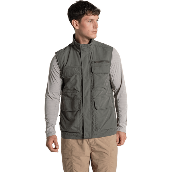 Craghoppers Nosilife Adventure Gilet V メンズは、軽量で耐久性に優れた植物由来の虫除け効果とUPF 50+の紫外線カット機能を備えたトラベルジレです。晴れた日のアウトドアに最適です。整理整頓された収納が重要な旅行やハイキング向けに設計されており、必需品を手元に置いて管理しやすくします。速乾性とイージーケア素材を使用しているため、旅行先での頻繁な着用や洗濯にも適しています。防臭性と吸湿発散性により、アクティブな活動中も快適な着心地を保ちます。