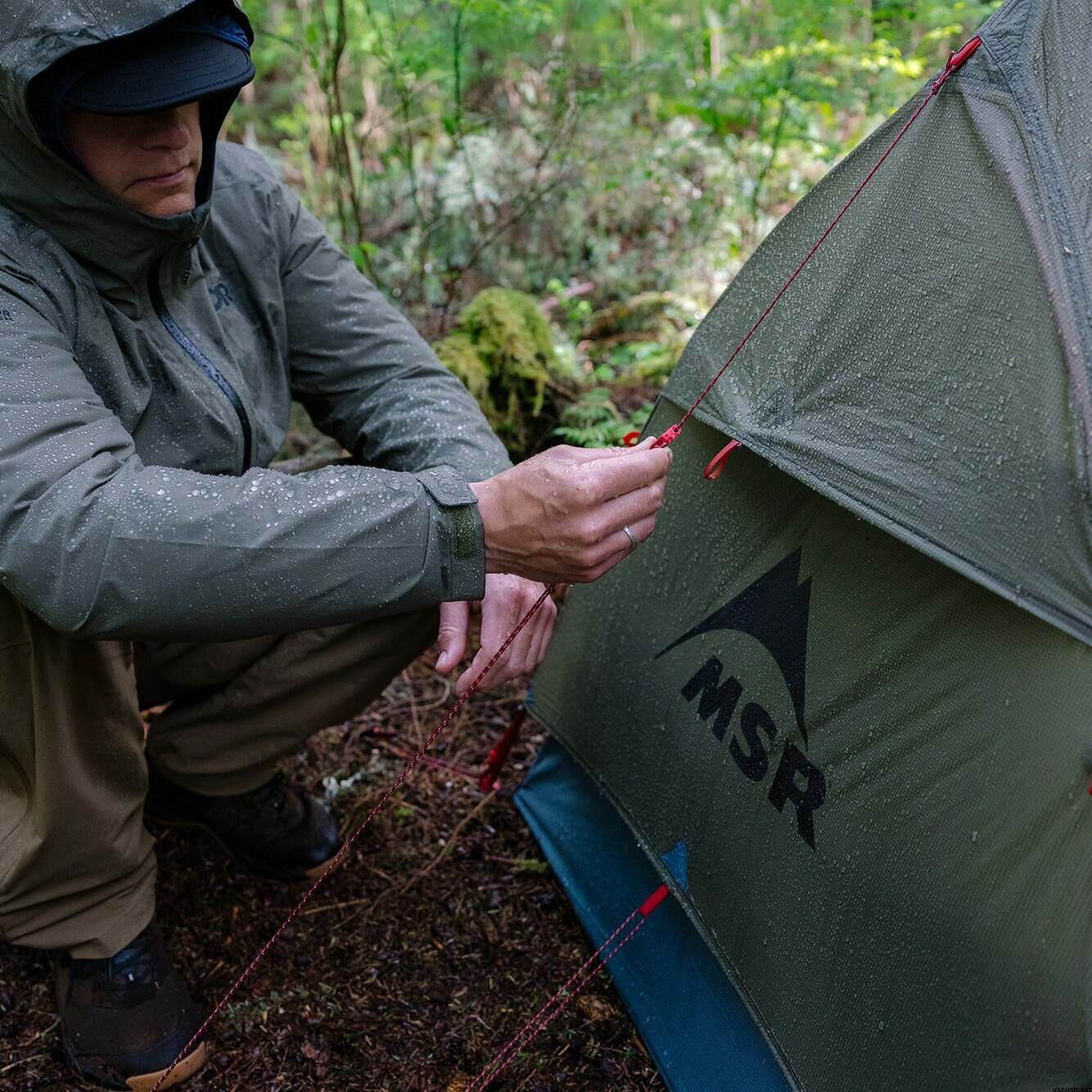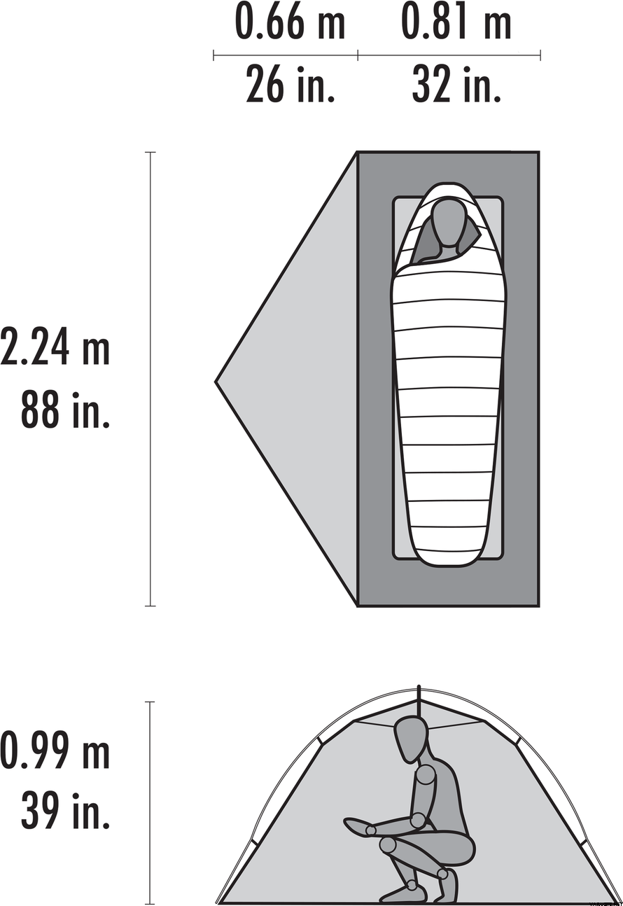 レインフライ生地:原着20デニールリップストップナイロン、耐水圧3000mmポリエーテルウレタン、PFASフリーシリコーン