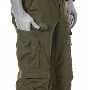 The stretch areas are made of a robust and comfortable Schoeller®-dynamic fabric. An additional vertical zipper on the upper leg pockets allows easy access, even while seating or kneeling. For maximum protection and additional air circulation, the pants come with pockets for UF PRO® Flex-Pads*.