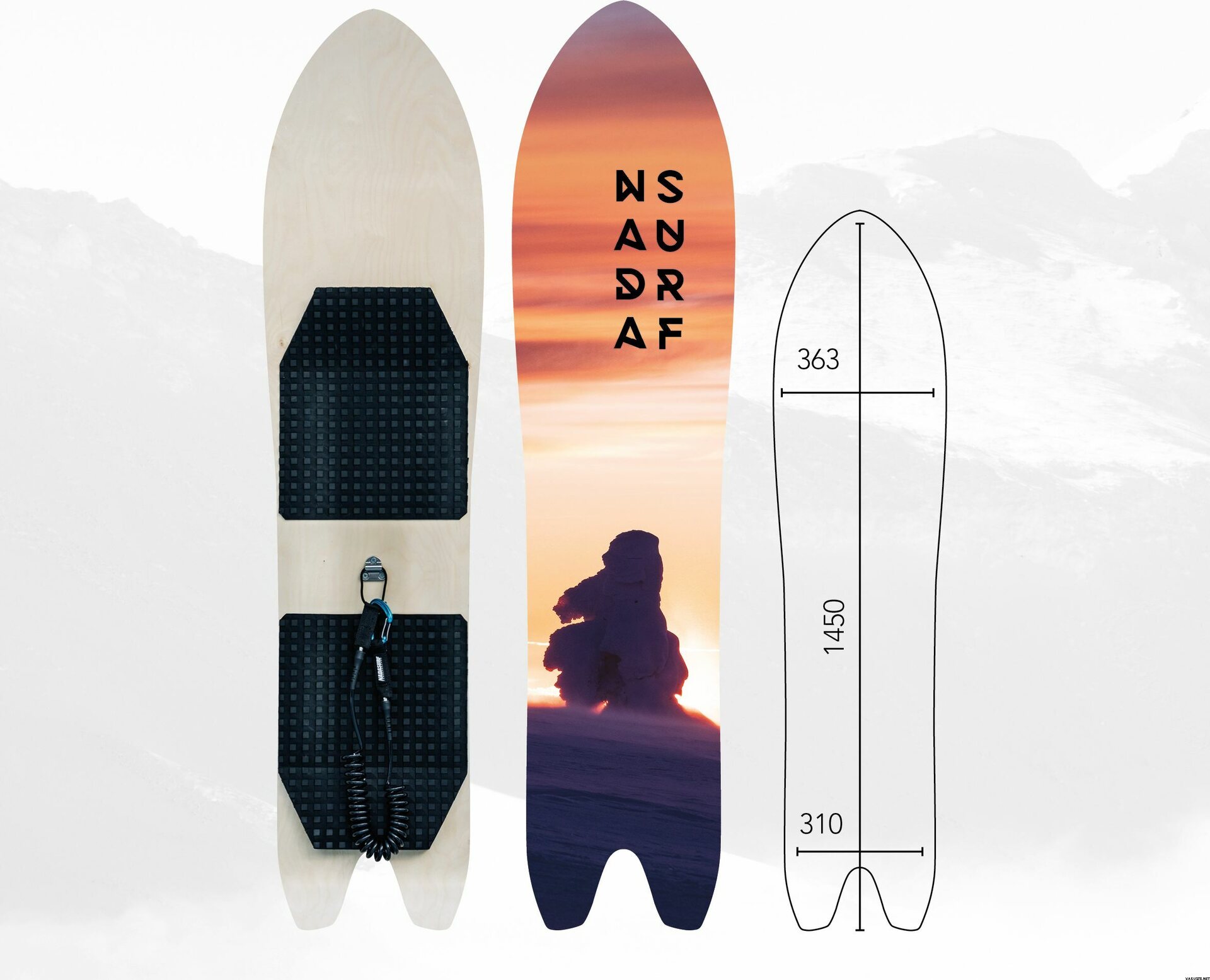 All Nadasurf Powderboards models include a pad and a leash.