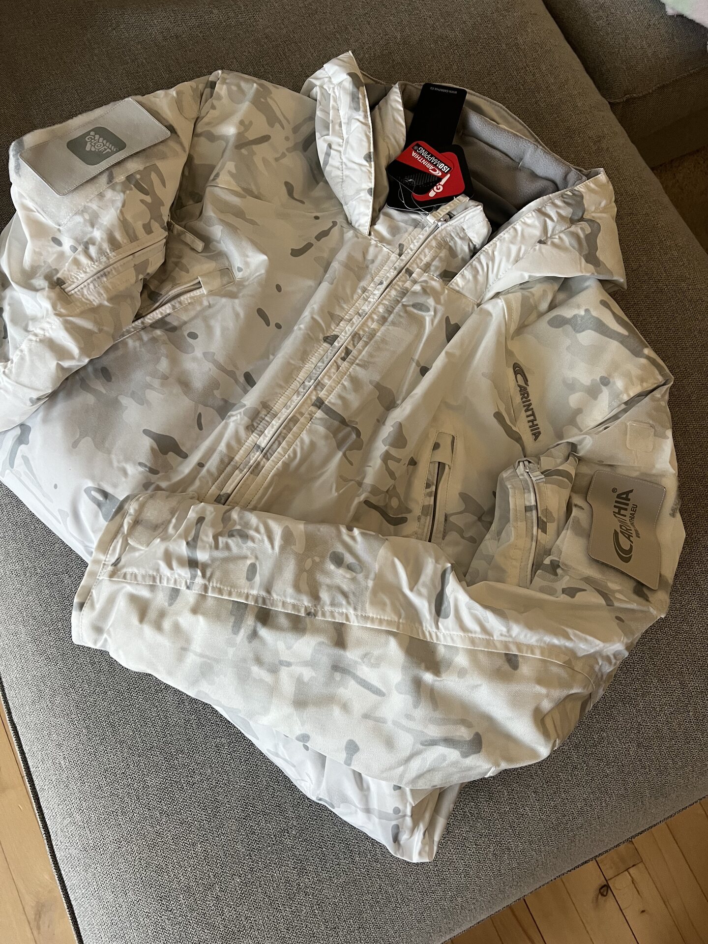 Ook bij deze jas zit het Wasvoorschrift verborgen in de heupzak en wijkt het Wasvoorschrift af van het wasvoorschrift van G-Loft op de website van Carinthia.