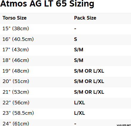Inhoud maat S/M: 65 liter