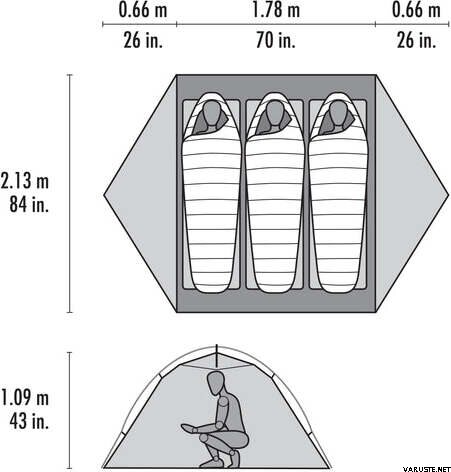 - Ruim rechthoekig interieur waarin moderne, brede slaapmatten gemakkelijker passen.