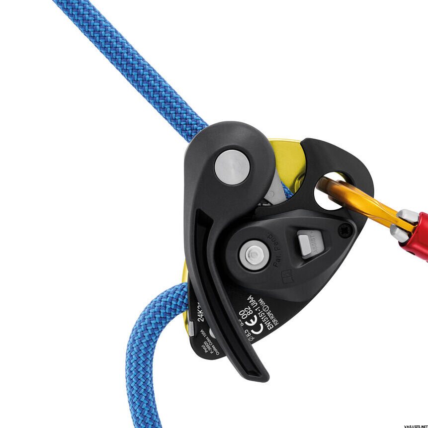 - De bekende Petzl-manoeuvreertechniek voor het toevoeren van lijnspeling en het opvangen van vallen, terwijl de remhand behouden blijft.