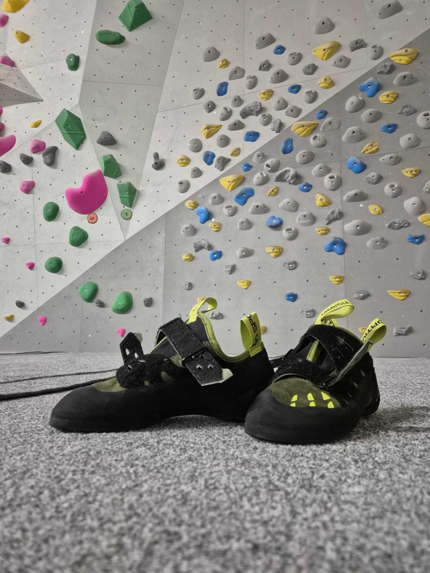 La Sportiva Tarantula is een veelzijdige klimschoen met klittenbandsluiting, ontworpen voor beginnende klimmers. Deze schoen is perfect voor zowel touwklimmen als boulderen, en biedt gemak bij het dragen en goede wrijving. De ongevoerde leren achterkant en de Pacific-gevoerde voorkant zorgen voor een comfortabele pasvorm, terwijl de FriXion Black rubberen zool voor een fijne wrijving zorgt. Voor doorgewinterde klimmers is de Tarantula een comfortabele optie voor lange, gemakkelijke routes. De leren constructie helpt om geuren te minimaliseren als deze goed wordt gelucht.