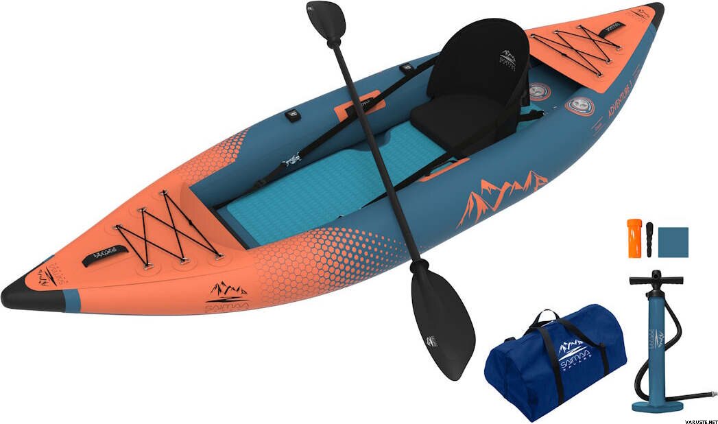 Saimaa Kayaks sin oppblåsbare kajakk Adventure 1 er en smidig og raskt oppblåsende kajakk for hele familien. Den brede profilen og de runde PVC-kantene gjør kanoen stabil, så det er lett å komme seg inn og ut av den åpne kajakken, og du trenger ikke bekymre deg for at kajakken skal velte når du padler. Takket være stabiliteten er fiske med Adventure 1 også svært vellykket. Et godt valg for en første kajakk med alt nødvendig utstyr klart for vannet.