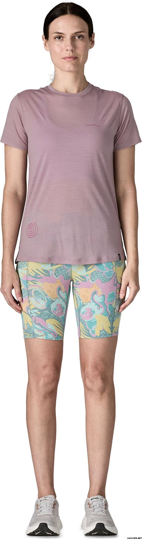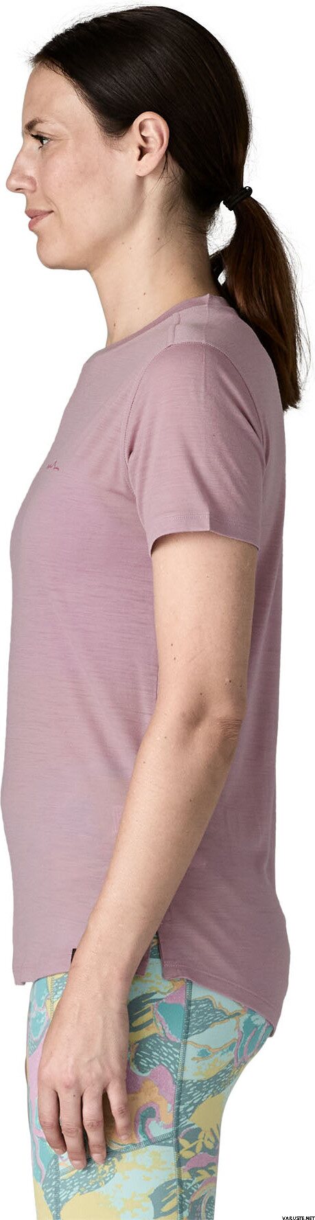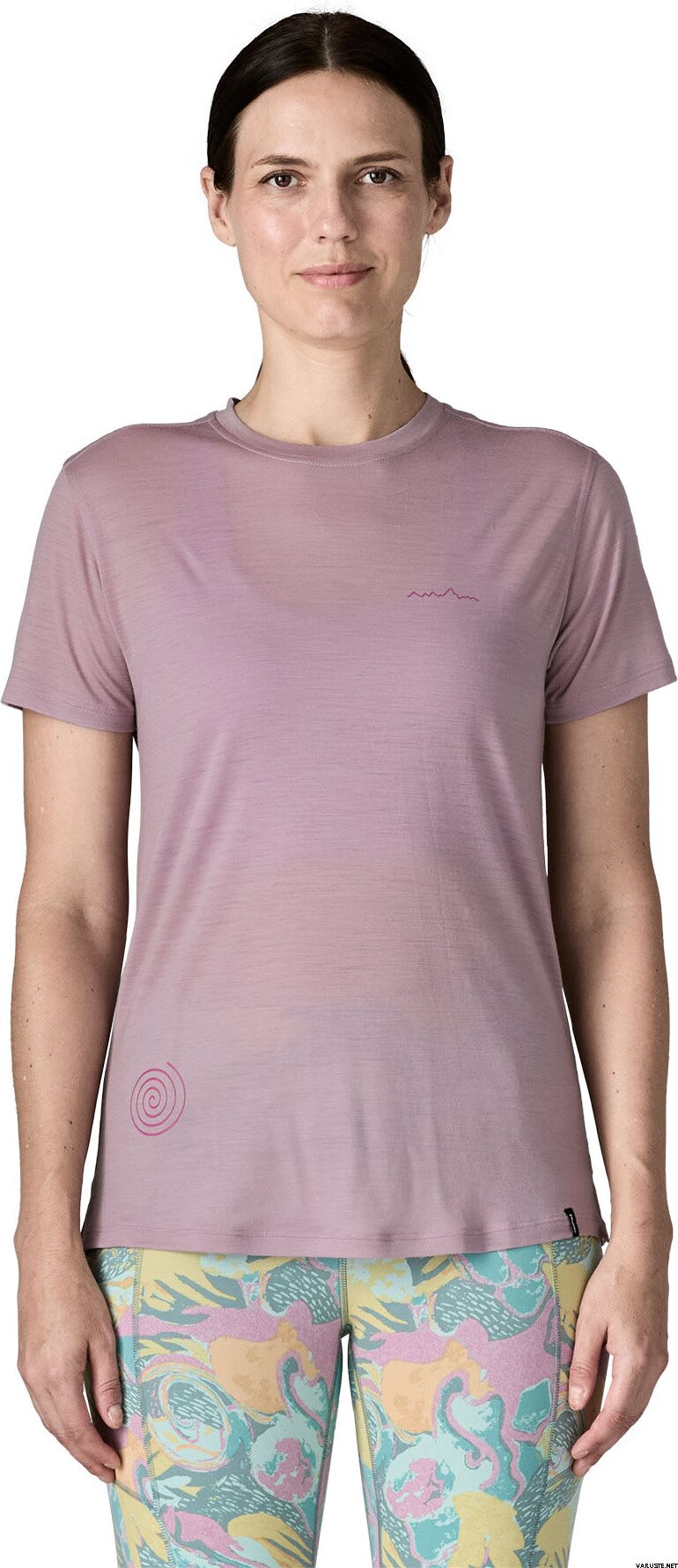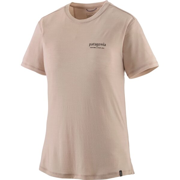 Patagonia Cap Cool Merino Blend Graphic Shirt Womens er en allsidig sports-t-skjorte for kvinner laget for å holde deg komfortabel under en rekke forhold. Denne pustende toppen kombinerer merinoull med resirkulert polyester for å regulere temperaturen naturlig, kontrollere lukt og sikre en myk følelse mot huden. Ideell for aktive sysler, den har en slank passform og er produsert i en Fair Trade-sertifisert fabrikk, som støtter etisk produksjonspraksis.
