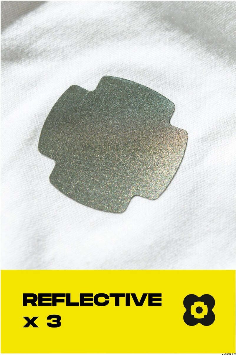 Fabpatch Reflective tilbyr en praktisk løsning for å forlenge levetiden og forbedre synligheten til friluftsklær og -utstyr. Disse tekstilmerkene, laget av reflekterende stoff, er designet for å feste seg ved gnidning, noe som gjør dem enkle å påføre. Pakken inneholder tre forskjellige merker, hver med en unik form og farge, noe som gir mulighet for tilpasning og ekstra sikkerhet under utendørsaktiviteter.