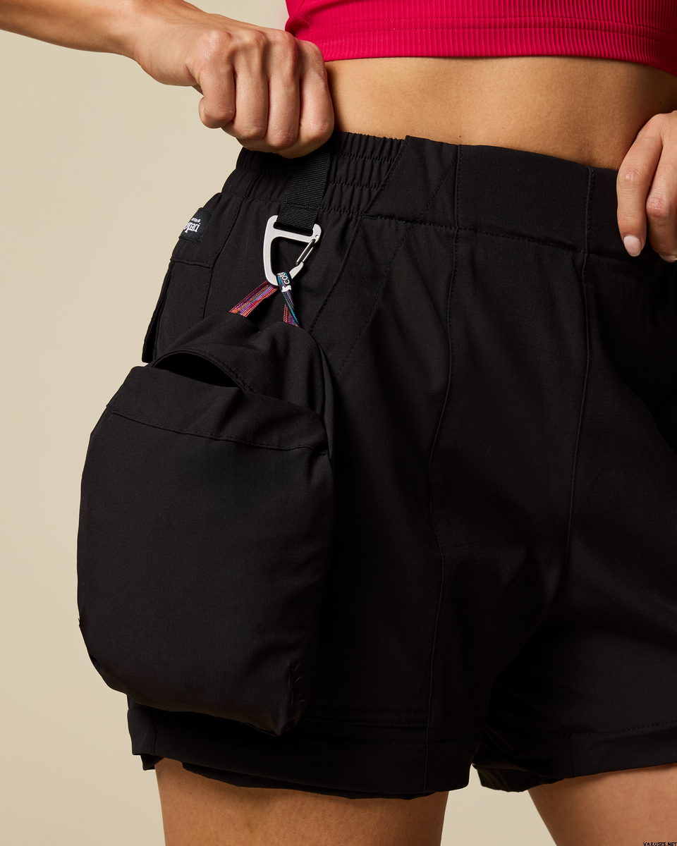 - Elastisk linning med integrert karabinkrok for rask festing