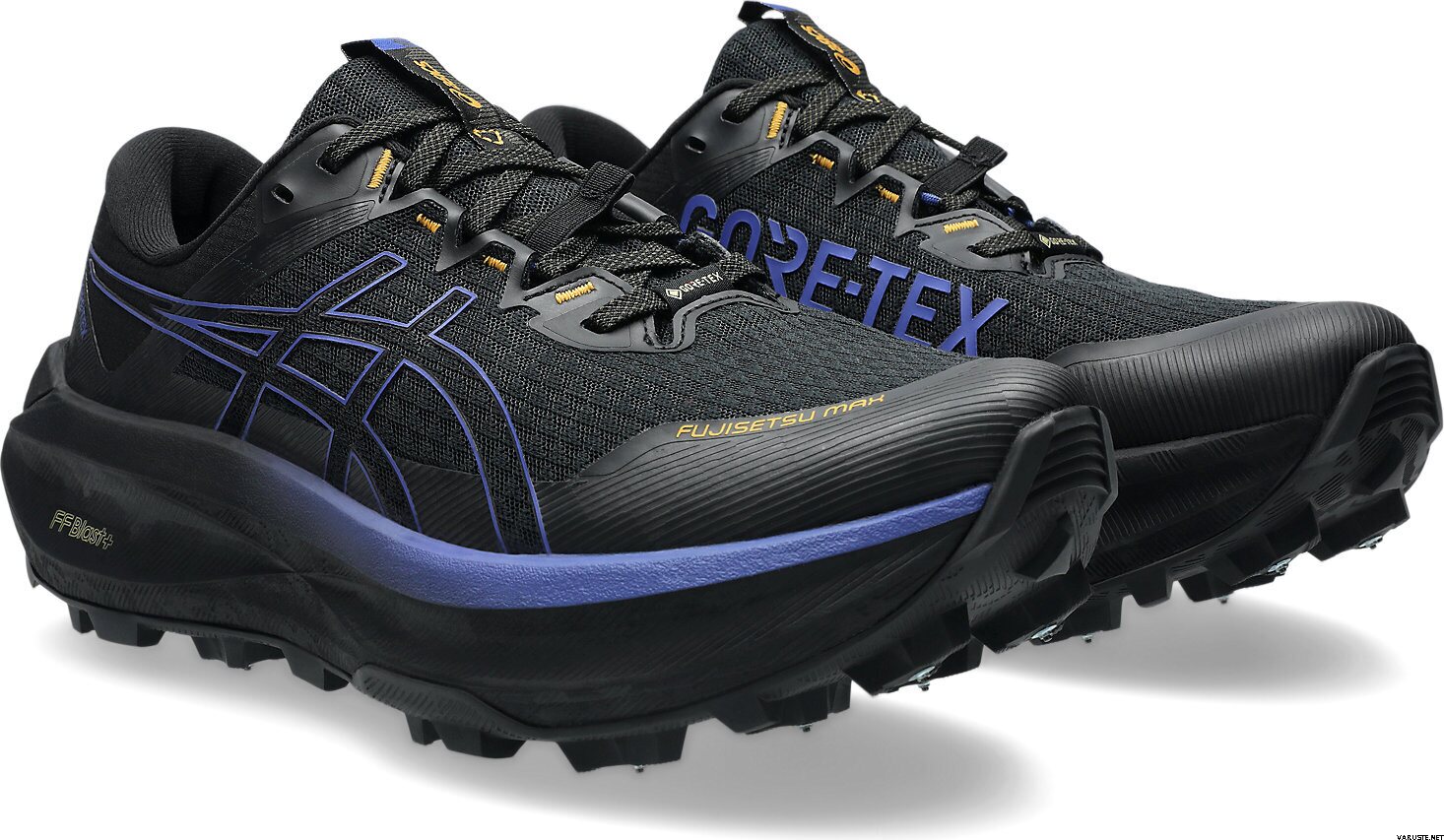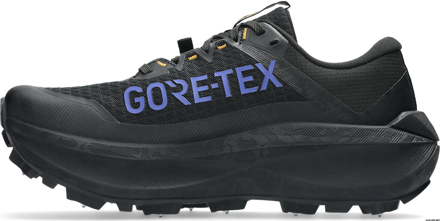 Asics Fujisetsu Max GTX herreskoen er laget for vinterterrengløping på snødekte stier. Denne skoen har en piggete yttersåle for bedre grep på isete overflater. Gore-Tex Invisible Fit-systemet integreres med en beskyttende overdel for å holde regn og snø ute, noe som sikrer komfort. Mellomsålen har lett FF Blast Plus-demping, som gir avansert støtdemping og energiretur, med en høyere stablehøyde enn tidligere modeller.
