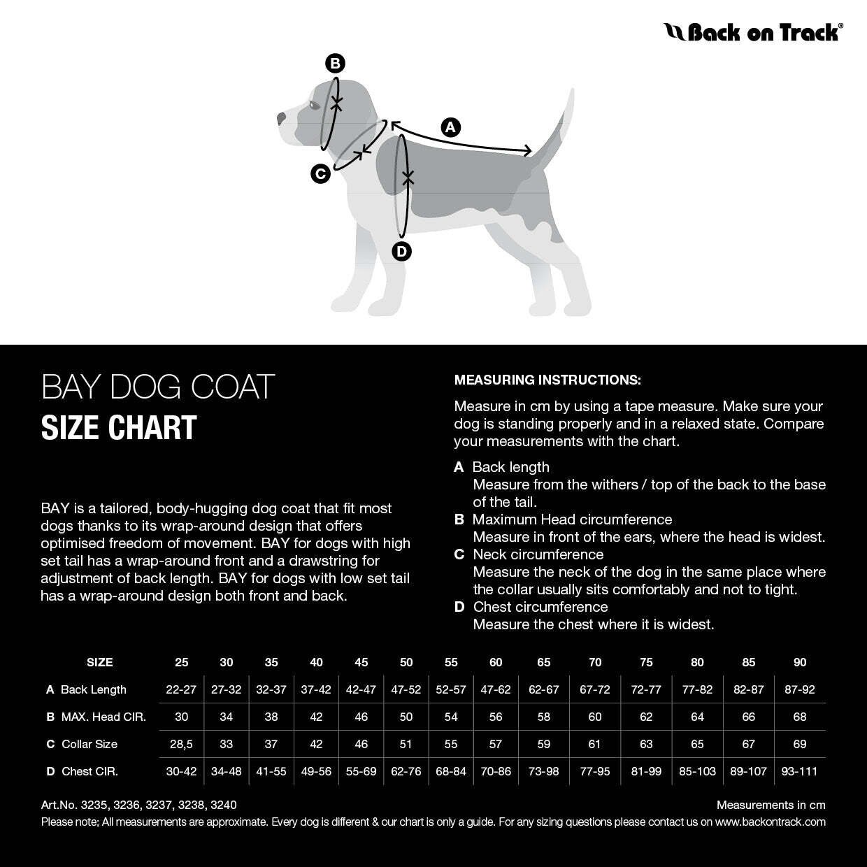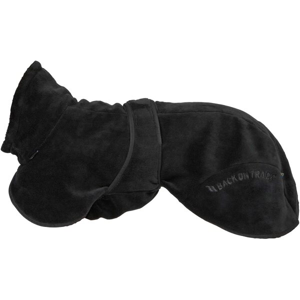 Back on Track Bay-badekåpen tørker raskt og gir hunden din luksuriøs komfort. Denne tørkekåpen er laget for å effektivt transportere bort fuktighet, noe som gjør den perfekt for etter utendørsaktiviteter eller daglig bruk. Den dekker store muskelgrupper og haleroten, noe som reduserer risikoen for smertefulle tilstander som vannhale. Badekåpen har Iontex-teknologi, som forbedrer sirkulasjonen ved å reflektere kroppsvarme som fjerninfrarød stråling, kjent for sine terapeutiske fordeler.