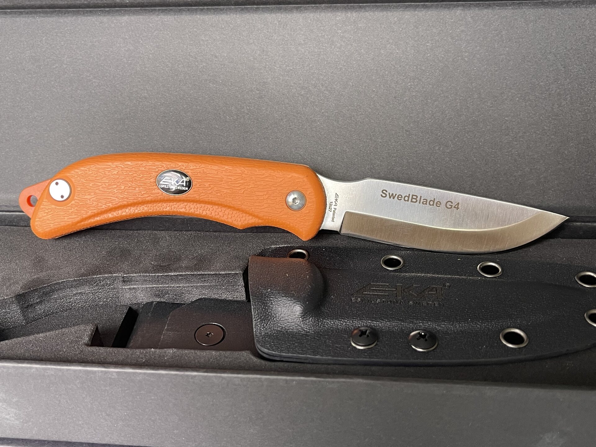 Päivittynyt versio ruotsalaisen Eka Knivarin ja yhdysvaltalaisen Outdoor Edge -yhtiöiden yhteistyössä kehittämästä tukevasta kääntöveitsestä, jonka toinen terä toimii normaalina puukkona ja toinen avauspuukkona. Muotoilu, ulkonäkö ja laatu on pidetty ennallaan, mutta nyt veitsen saa purettua kokonaan auki yhdellä klikkauksella! Se taas tekee puhdistuksesta luonnollisesti helpompaa, pysyy veitsi siistinä kun saa putsattua myös sisäpuolelta kunnolla. Vyökotelo on myös uudistettu entistä käytännöllisemmäksi ja vähemmän tilaa vieväksi.