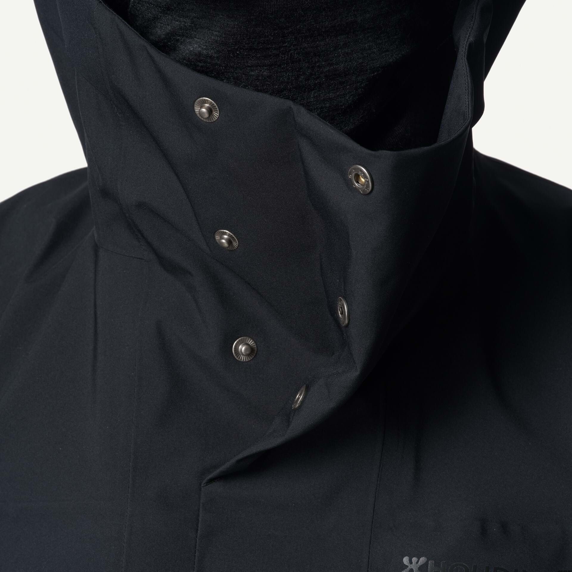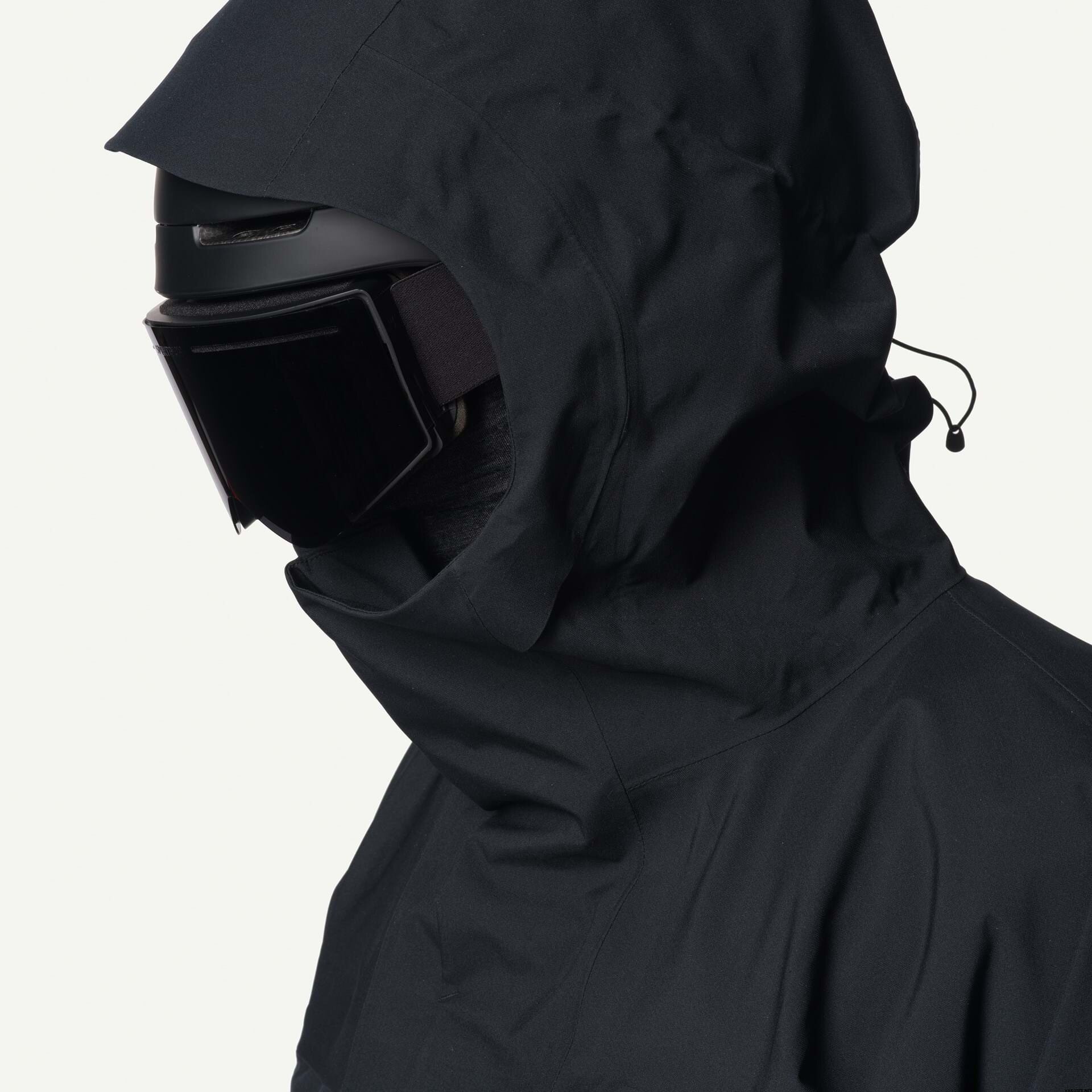 Houdini Shelter-anorakki on valmistettu kevyestä, vahvasta ja joustavasta Loop Hardshell -kankaasta. Se on 3-kerroksinen veden- ja tuulenpitävä kuori, jolla on erinomainen hengittävyys. Kangas on valmistettu 70 % kierrätetystä polyesterista ja se on täysin vapaa PFAS:sta. Takin pukemisen ja riisumisen helpottamiseksi Houdini on lisännyt sivuun vetoketjun, joka toimii myös ventilaationa. Kolme painiketta säätävät kauluksen leveyttä ja huppu on kypäräyhteensopiva ja täysin säädettävä. Anorakissa on tilava kengurutasku, jossa on sisäinen matkapuhelintasku ja tuuletusverkko