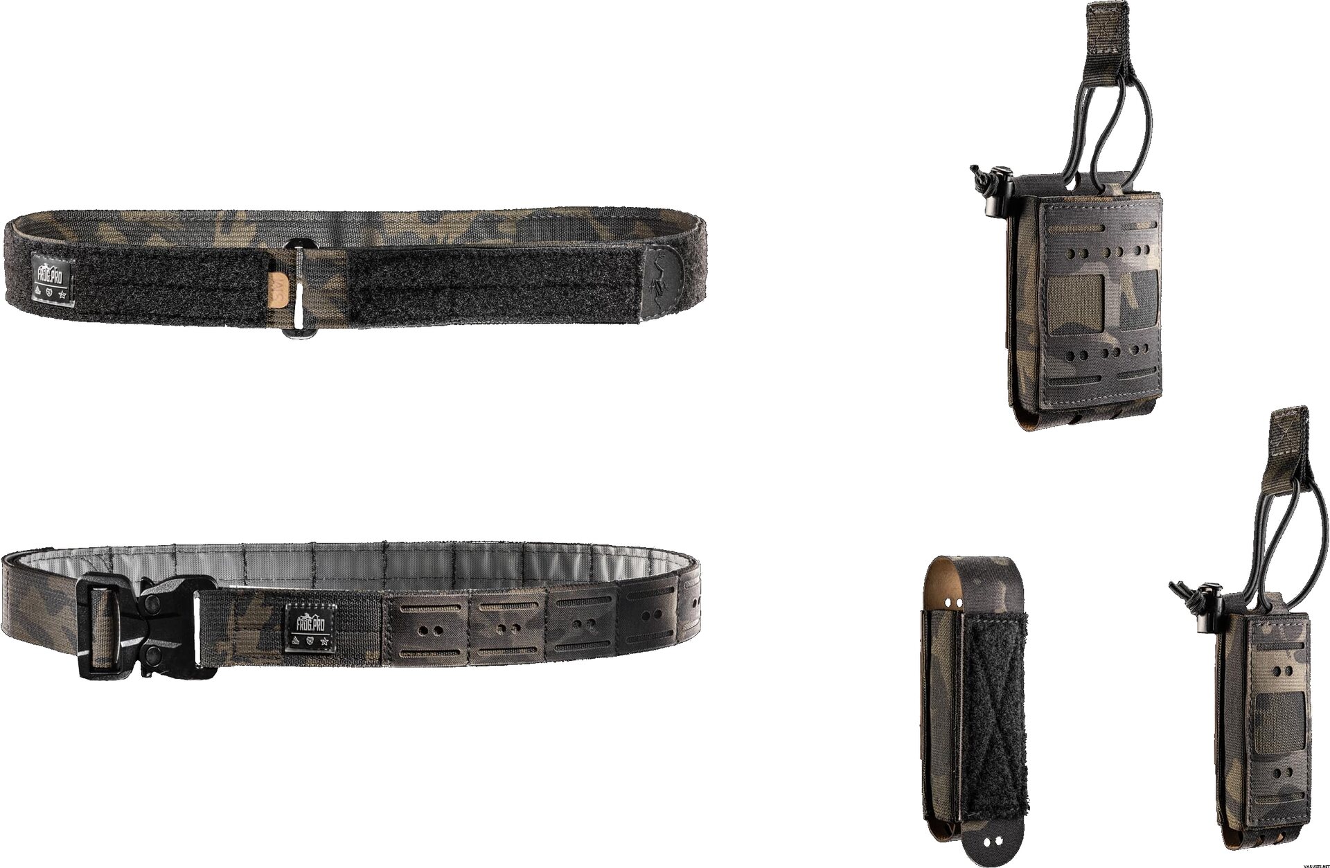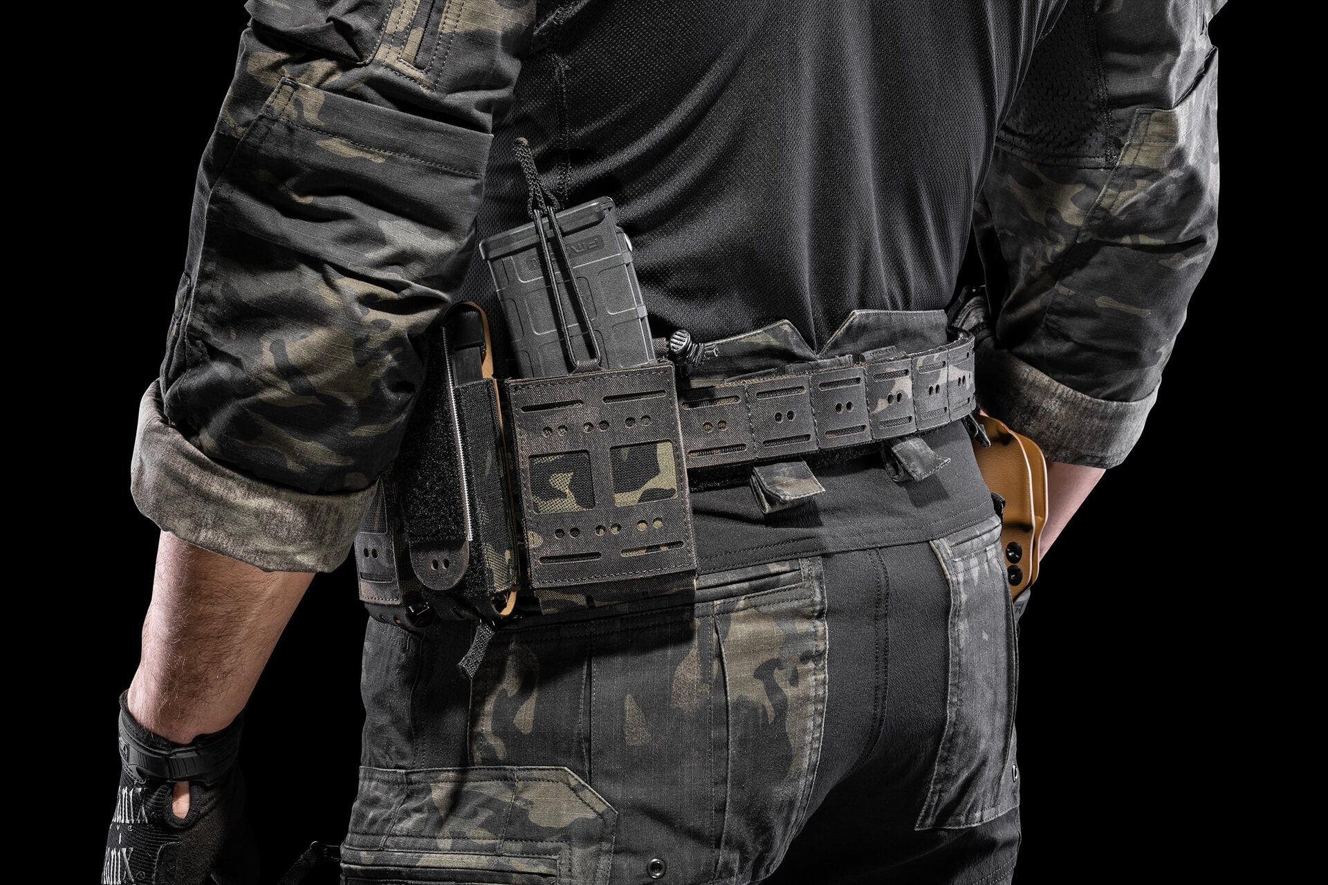 The belt comes with an Elastic Open Top pistol magazine pouch for speed reload, a pouch with flap and hook and loop fastener closure for a second magazine, a flashlight or a multitool, and a rifle magazine pouch, which if necessary, it can also be used for a smartphone or a small medical kit.