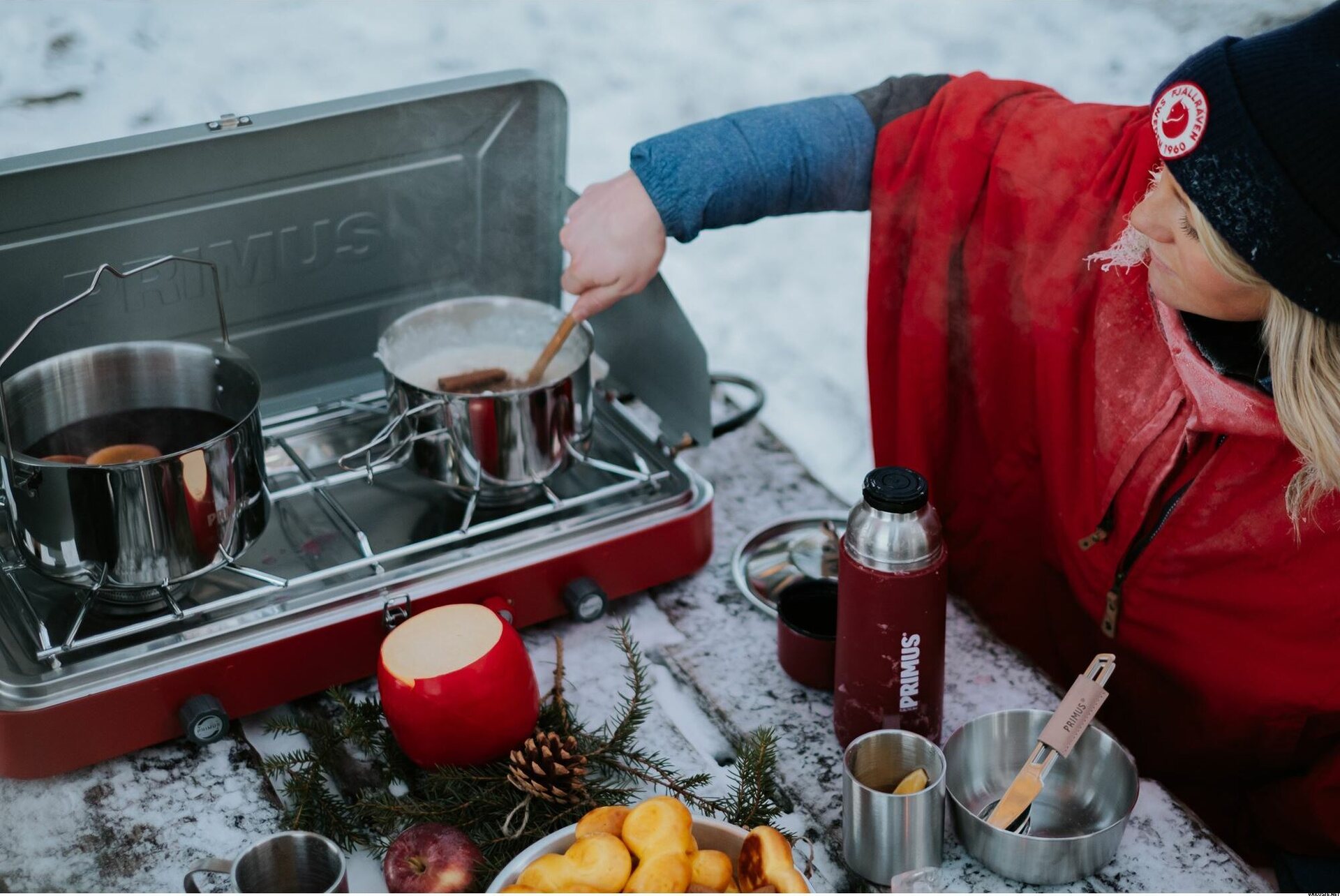 Mukana tulee letku ja liitin täytettäviin 2 kg:n Primus-kaasupulloihin (sininen pullo M16x1.5-kierteellä), keitin ei tehdasasetuksilla toimi muiden kaasupullojen kanssa. Varusteen valikoimista näitä M16x1.5-kierteisiä kaasupulloja ei valitettavasti löydy.