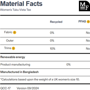 Rab Tuku Vista Tee Womens on valmistettu 100% luomupuuvillasta, tarjoten pehmeän ja miellyttävän tunteen jokapäiväisiin seikkailuihin. T-paita sopii erinomaisesti erilaisiin aktiviteetteihin, kuten vaelluksille tai rentoutumiseen nuotion äärellä.