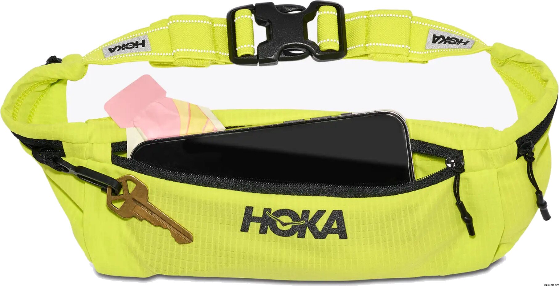 Hoka Run Belt on napakka ja pehmeä juoksuvyö, jossa kolme vetoketjullista taskua pitämässä tärkeimmät tavarat varmassa tallessa. Matalaprofiilinen rakenne asettuu lähelle vartaloa ja joustava kangas pysyy hyvin paikoillaan liikkeessä. Kevyt pehmustus auttaa vähentämään puhelimen tai avainten painamista ihoa vasten. Vyö sopii sekä maantiejuoksuun että kävelyyn, kun halutaan kuljettaa varusteet hands free -tyyliin.