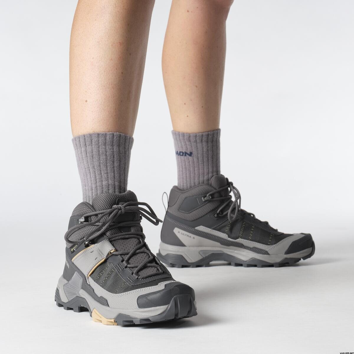 Salomon X Ultra 5 Mid Wide GTX on luotettava naisten ulkoilukenkä. Kevyet ja vakaat retkeilykengät tarjoavat turvallisuutta ja ketteryyttä poluilla, ja niiden kestävä Matryx-päällinen sekä pitkäikäinen Contagrip-ulkopohja takaavat mukavuuden ja pidon.
