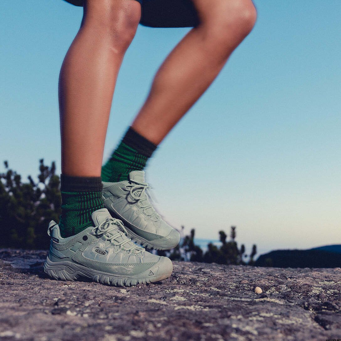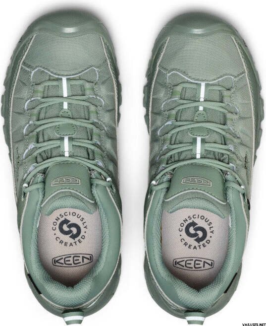 Keen Targhee EXP Waterproof Womens ovat naisten vapaa-ajan jalkineet, joissa yhdistyvät tukeva rakenne ja ripeään menoon sopiva verkkopäällinen sekä vedenpitävä Keen.Dry-kalvo. Kengät on tehty poluille ja vaihtelevaan maastoon, jossa pito ja jalkaterän suojaus korostuvat. Vaimennettu välipohja ja irrotettava pohjallinen holvituella auttavat jaksamaan. Ulkopuolinen tukirakenne ja kantapään muotoilu lisäävät hallintaa epätasaisella alustalla.