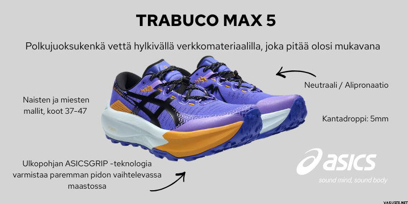 - ASICSGRIP-ulkopohja parantaa pitoa vaihtelevassa maastossa