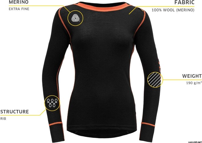 Devold Basic Shirt Womens tarjoaa ylellisen tunteen 100 % hienosta merinovillasta, mikä takaa pehmeän ja hengittävän käyttökokemuksen. Tämä villainen aluspaita on suunniteltu urheilullisella ilmeellä, ja siinä on pidennetty takahelma ja litteät saumat mukavuuden lisäämiseksi. Helppohoitoinen, sillä se kestää konepesun ja matalan lämpötilan rumpukuivauksen.