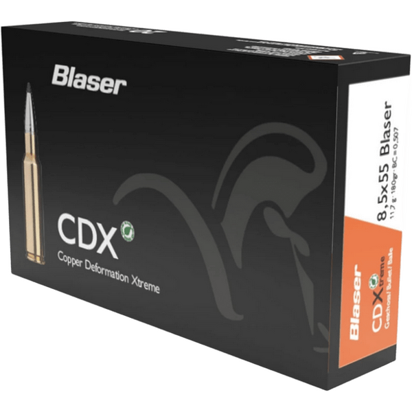 Blaser 8,5 x 55 Blaser CDX 11,7g / 180gr 20kpl tarjoaa erinomaisen tarkkuuden ja suorituskyvyn metsästykseen. Lyijytön patruuna on suunniteltu erityisesti keskikokoiselle ja suurelle riistalle, ja takaa luotettavat tulokset pitkiltäkin etäisyyksiltä. Ammuksen laajeneva luoti säilyttää lihan laadun ja vähentää ympäristövaikutuksia.