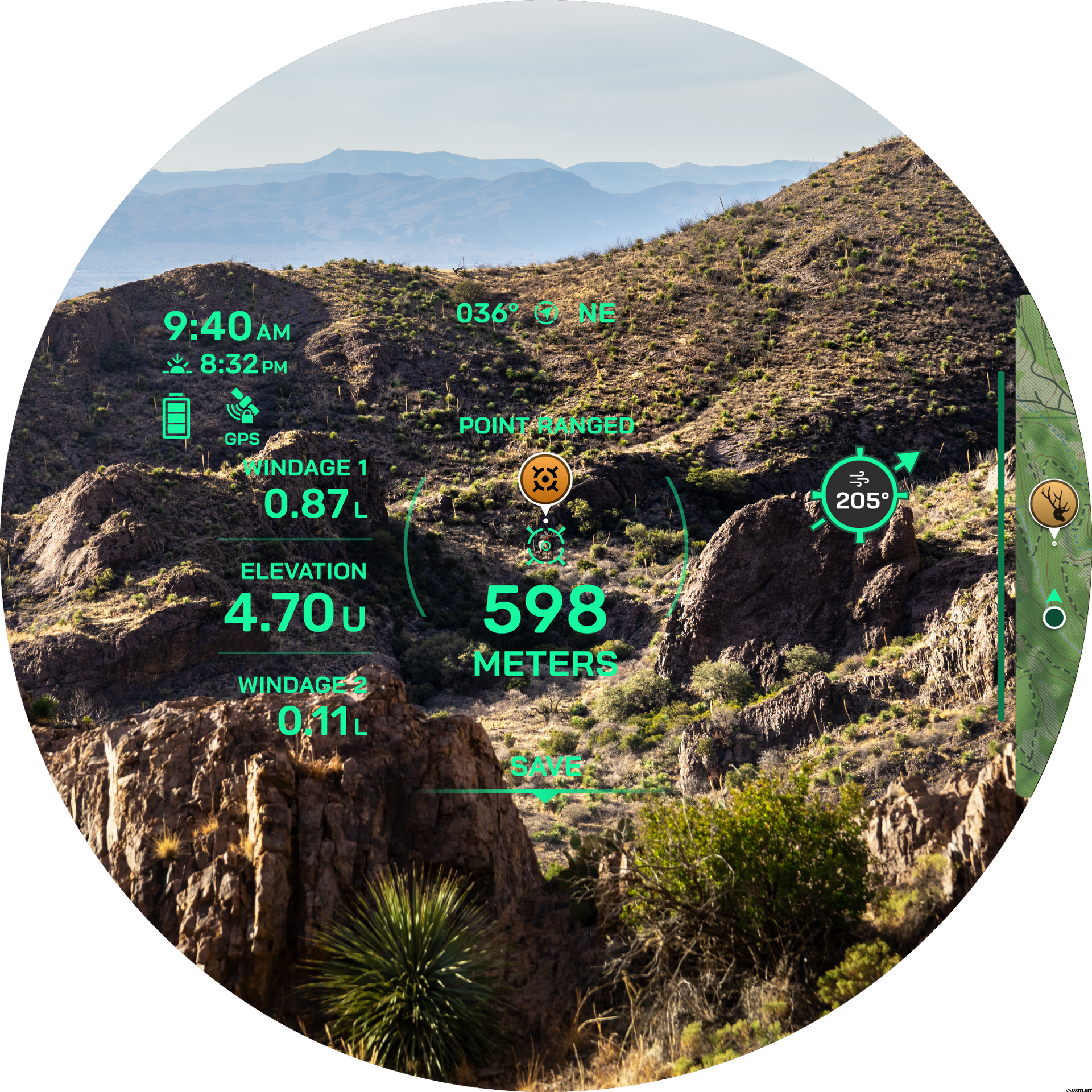 Etäisyys hirvieläinkohteisiin (täysi auringonpaiste): Eläimet: 1 375 m; Puut: 1 800 m; Retroheijastava: 5 000 m
