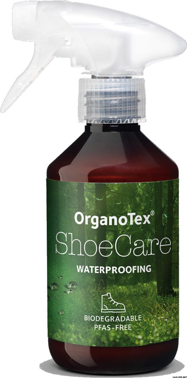 OrganoTex ShoeCare Waterproofing 300ml on tehokkaasti imeytyvä kenkien kyllästesuihke, joka auttaa torjumaan veden ja lian tarttumista ilman kalvomaista pintaa. Kylläste sopii eri materiaaleille ja se levitetään suihkuttamalla suoraan puhdistetuille kengille tai saappaille. Koostumus tukee materiaalin hengittävyyden säilymistä ja auttaa pidentämään käyttöikää. Tuote on PFAS-vapaa, helposti biohajoava ja Oeko-Tex Eco Passport -ympäristömerkinnällä varustettu.