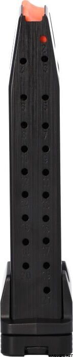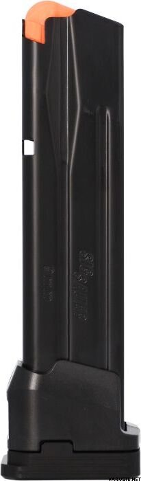 This factory magazine comes standard with the 23-round P211 models. Since the P211 operates off P320 magazines, this magazine will also work with ALL 9mm P320 models. This magazine features rear witness holes to confirm loaded capacity, an orange follower that makes it easy to identify when unloaded, and a black baseplate. The baseplate assembly is made of durable aluminum with a polymer sleeve. The baseplate sleeve is a one-piece assembly and is designed to be seated at the bottom of the P211 and full-size or carry P320 grip modules. There will be a gap when used on P320 compact grip modules.