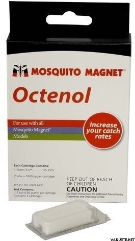 Tuotteen kuvausOctenol - vertaimevien hyönteisten houkuteaine. Octenol on luontaisesti esiintyvä aine, jota esiintyy kasveissa ja joissakin suuria määriä kasvillisuutta syövissä eläimissä, kuten naudoissa. Tutkimukset ovat osoittaneet, että Octenol ja hiilidioksidi muodostavat yhdessä hyttysiä ja muita vertaimeviä hyönteisiä puoleensavetävän yhdistelmän. Kun Octenolia käytetään yhdessä hiilidioksidin kanssa, se kasvattaa saalismäärän moninkertaiseksi. Octenol on saatavissa teipillä suljetussa pakkauksessa, joka sijoitetaan Mosquito Magnet -laitteeseen. Kapseli suositellaan vaihdettavan 24 päivän välein. Huomaa: Octenol-aine ei vähene, vaan se haihtuu ja menettää tehonsa 24 päivän jälkeen. Varmista, että vaihdat houkuttimen ohjeiden mukaisesti. Octenol kolmen kapselin pakkaus (sopii kaikkiin malleihin).