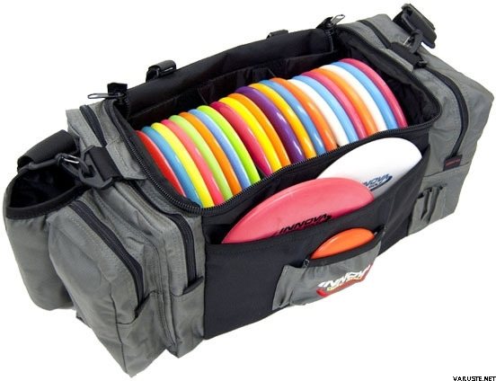 Haluatko kantaa kaiken, mitä kisaviikonloppuna frisbeegolfradalla tarvitaan? DisCarrier on tehty tosiharrastajia varten. Kassiin mahtuu muhkea määrä (20 – 25) kiekkoja sekä vielä sadevarusteet ja muut tarvikkeet kaupan päälle. Taskuja löytyy joka lähtöön, putterista puhelimeen. DisCarrierissä on vastaava kevytrakenteinen ja helposti säädettävä kiekkojen jakaja kuin Competition Bagissa.