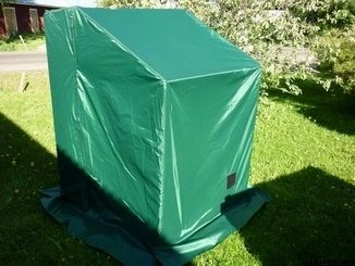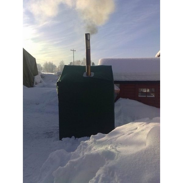 Tuotteen kuvausSaunapaketti, jossa mukana teltta, lauteiden metallirungot ja puukiuas