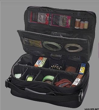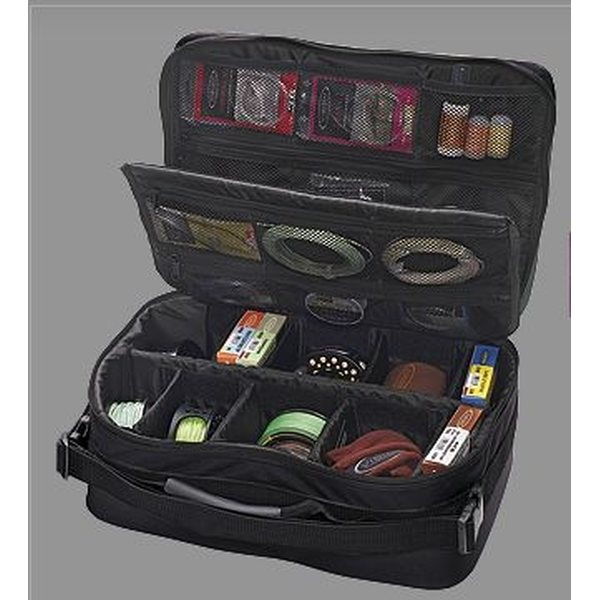 Tuotteen kuvausTässä isommassa mallissa on runsaasti tilaa keloille, varapuolille ja siimoille. Se on jaettu pehmeällä väliseinällä jonka verkkotaskuihin mahtuu kaikki pienemmät tavarat hyvässä järjestyksessä. Laukussa on irrotettavat sisäseinät, joten voit lokeroida sen tarpeittesi mukaan. Kova ulkokuori pitää muotonsa vaikka laukku olisi ladattu täyteen keloja. Kaksoisvetoketju.
