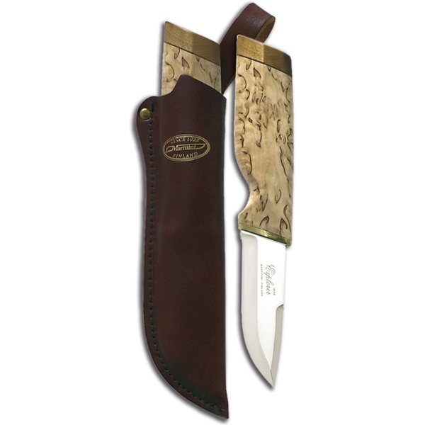 Kahvan muotoilu takaa pitävän ja mukavan otteen puukosta. Ruostumattomasta teräksestä valmistettu terä sopii niin metsästäjien kuin retkeilijöidenkin tarpeisiin. Puukon kruunaa ruskea nahkatuppi.