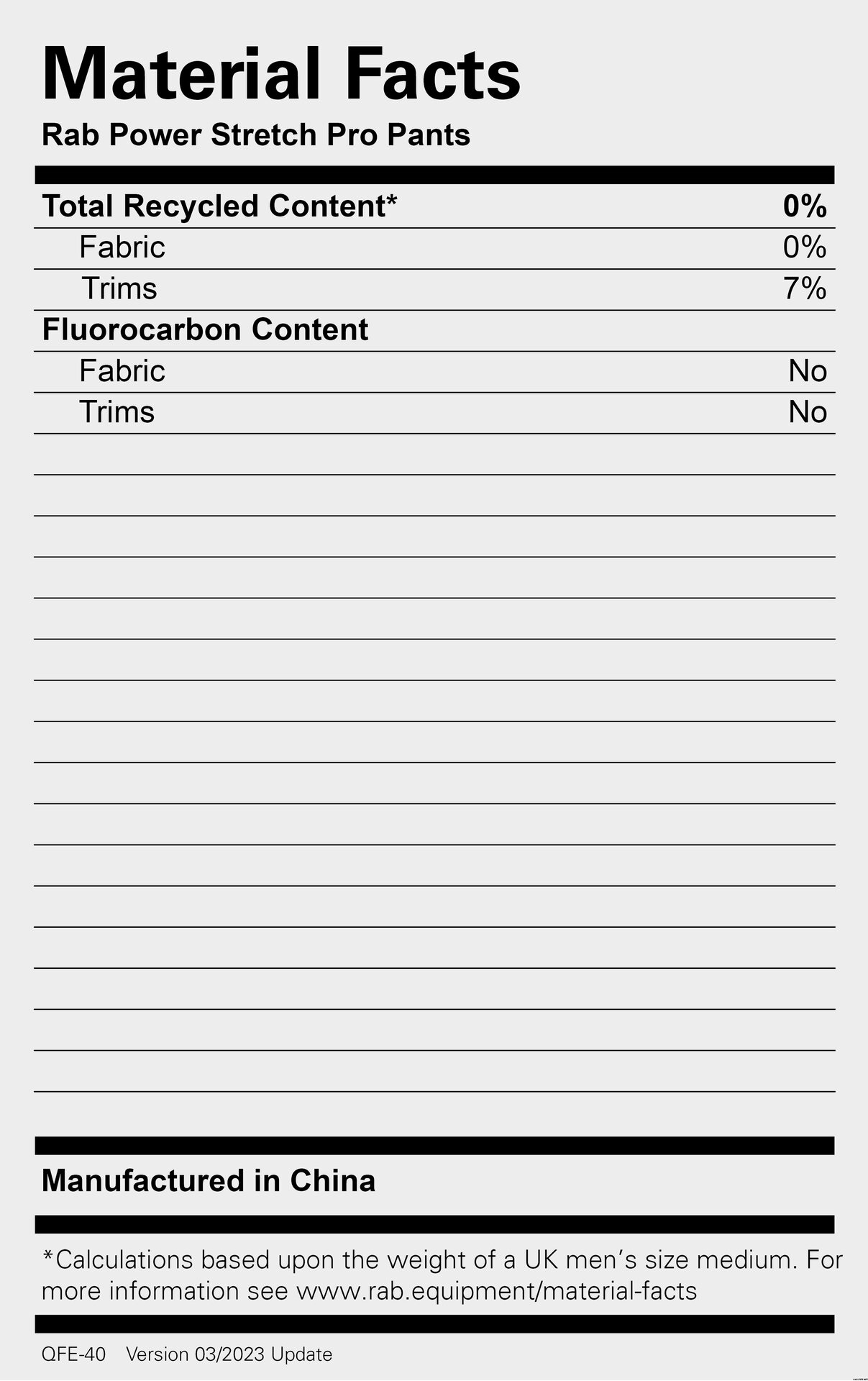 Polartec Power Stretch Pro:, 241g/m², 38% nylon, 53% polyesteri, 9% elastaani