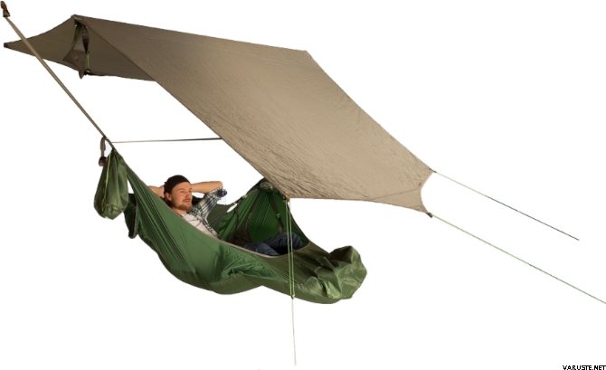 Hintaan sisältyy AMOK DRAUMR 3.0 puumajoite integroidulla hyönteisverkolla. Mukana sadekate, pulloteline ja kaksi varustetaskua, sekä kaikki tarvittavat kiinnikkeet puuhun ripustamiseen. Rungon paino 1340g. Kantavuus 150kg. Pakettiin kuuluu myös sadekatos ja 6 metallivaarnaa. Sadekangas on 30D kahdesti silikonikäsiteltyä Ripstop Nylonia ja painaa 713g. Yhteispaino 2056g.