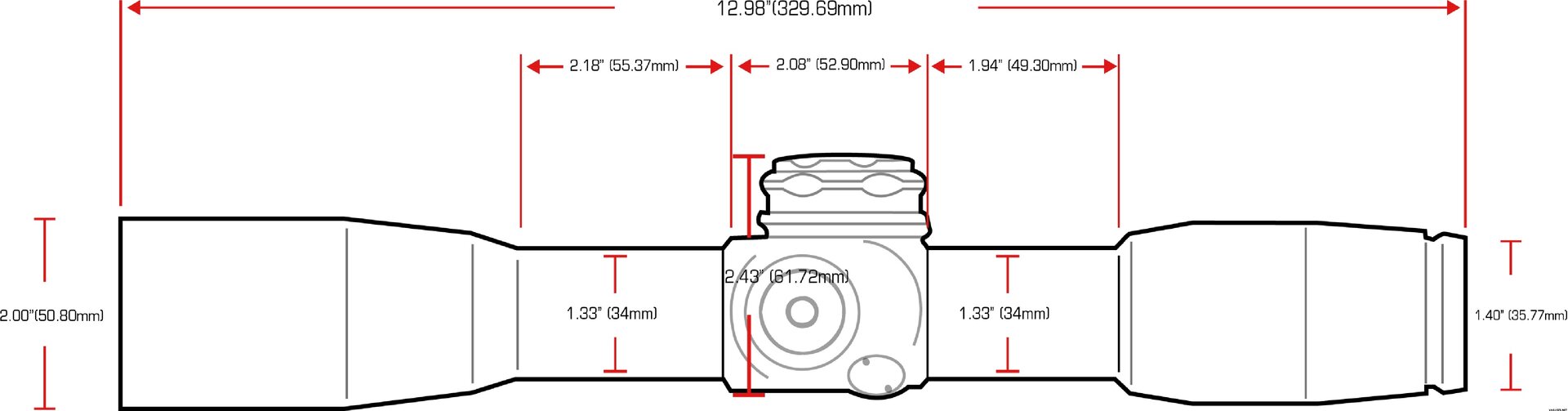 - Overall Length: 12.98” / 329.6 mm