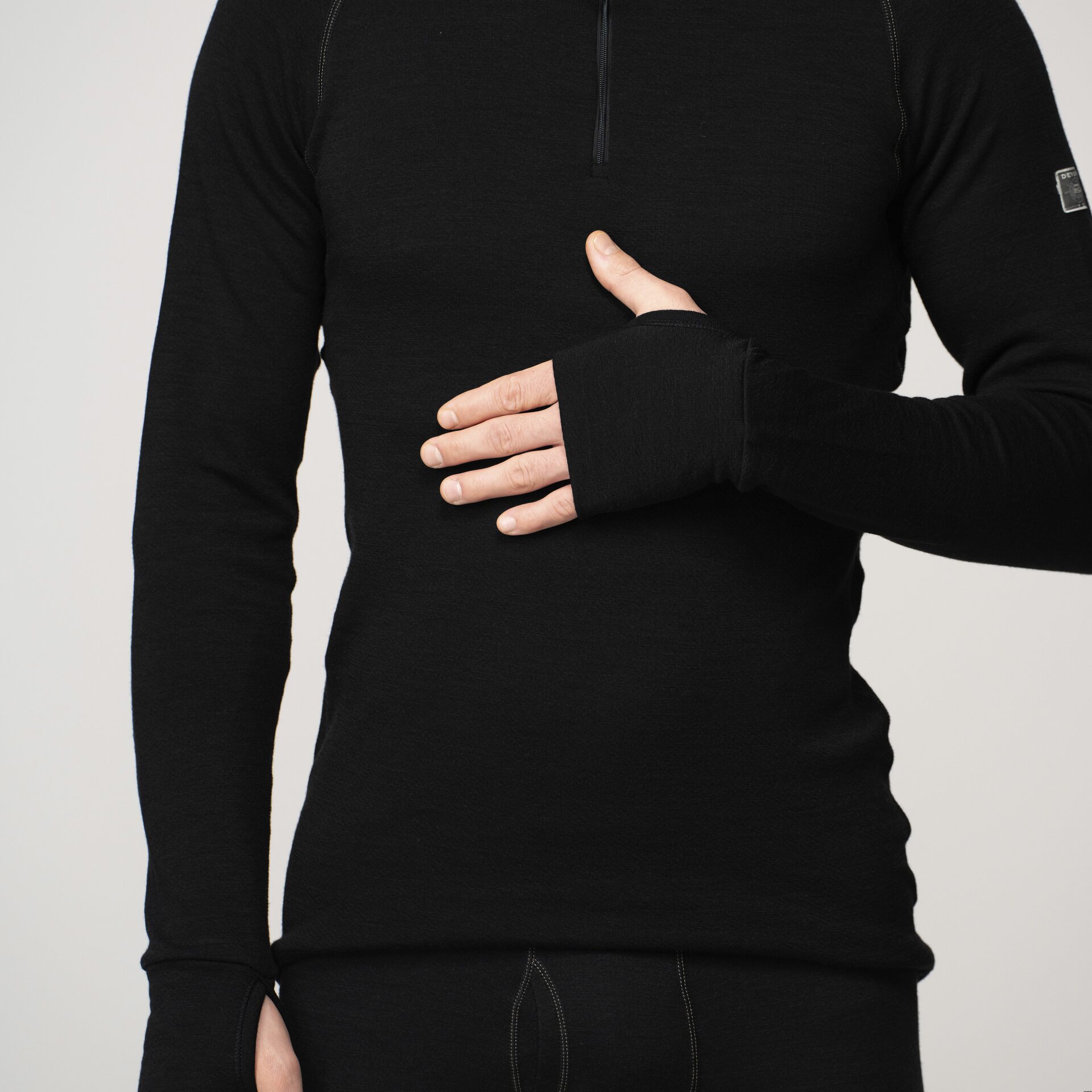Erinomainen lämmin merino, pitkä kaulus ja peukaloloopit mitkä on minulle must. Varsin lämmin aluspaita, kylmän kelin skinnauksissa käytän kuoritakin alla.