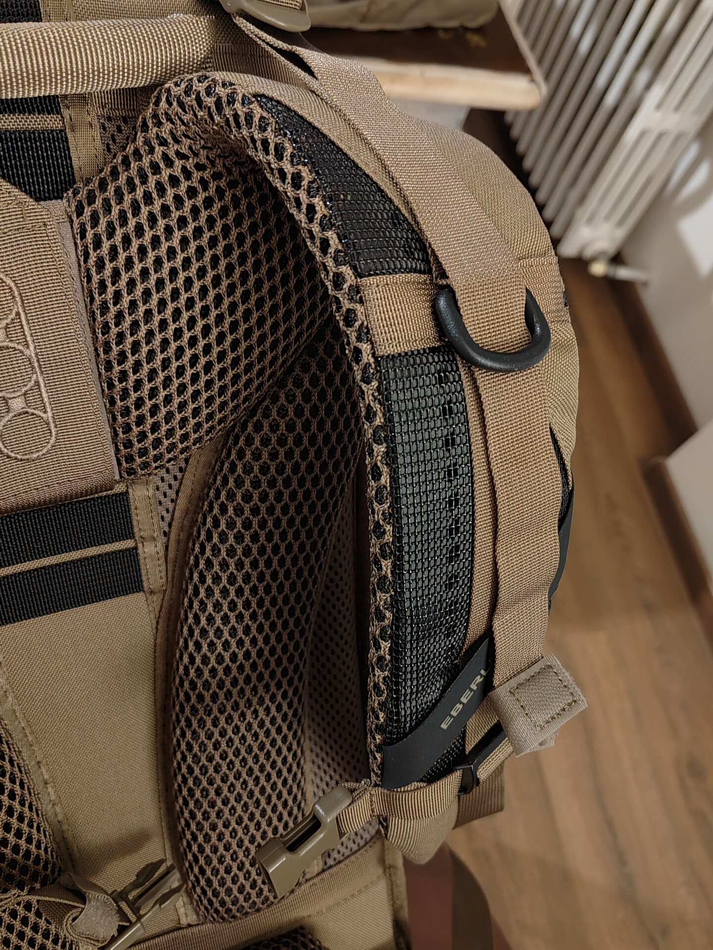 Sivussa olevia puristushihnojen silmukoita tulisi olla enemmän, mikä antaa paljon enemmän vaihtoehtoja erilaisten kuormien kiinnittämiseen, myös molle-paneelin ylä- ja alaosaan olisi pitänyt sisällyttää vähintään kaksi.